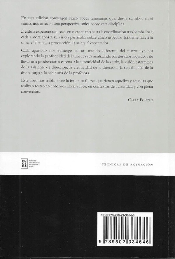 Estos ensayos reflexionan sobre el teatro desde diversas perspectivas, con contribuciones de varias autoras involucradas en distintas áreas del arte teatral. Se abarca desde la actuación, dirección, dramaturgia y enseñanza, hasta la producción teatral, mostrando cómo cada rol contribuye al proceso de creación de una obra. En cada sección se detalla la experiencia personal de cada una de las autoras, desde sus diversos roles, lo que brinda una visión íntima del teatro como un espacio colectivo de transformación y reflexión social. Se destaca el valor del teatro independiente en Buenos Aires, cómo este ha sobrevivido a diferentes contextos, y su rol crucial en la cultura de la ciudad. Buenos Aires se presenta como un faro cultural, irradiando diversidad y calidad en la investigación teórica y artística.