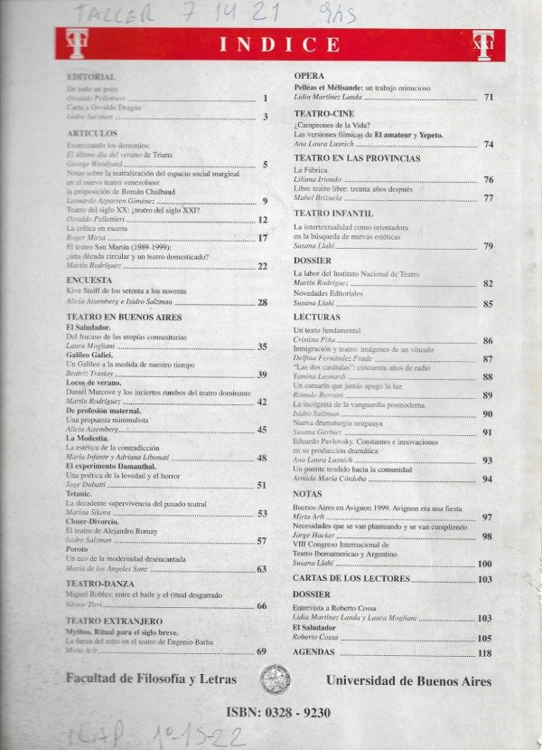 Artículos sobre artes escénicas.
